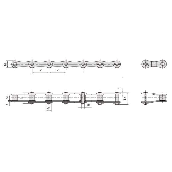 - Struktura podobna do precyzyjnych łańcuchów rolkowych o krótkim skoku, odziedziczona po nich wysoka wydajność i niezawodność.