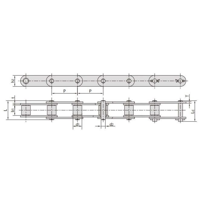 - Wzmocnione tuleje między płytkami łańcucha pozwalają na przekroczenie znamionowej podziałki w razie potrzeby, z zachowaniem luzu dla bezpiecznej i prawidłowej pracy.