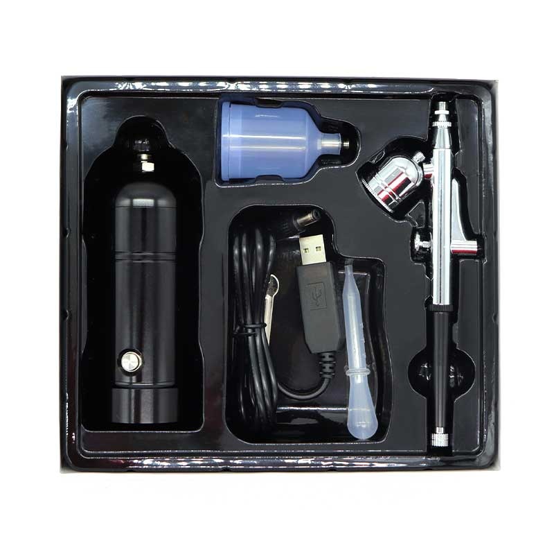 Mini Airbrush Compressor to małe i bardzo wydajne urządzenie do sprężania powietrza, szeroko stosowane w różnych dziedzinach rzemiosła, makijażu, malowania modeli i innych dziedzinach wymagających precyzyjnych technik natryskiwania.