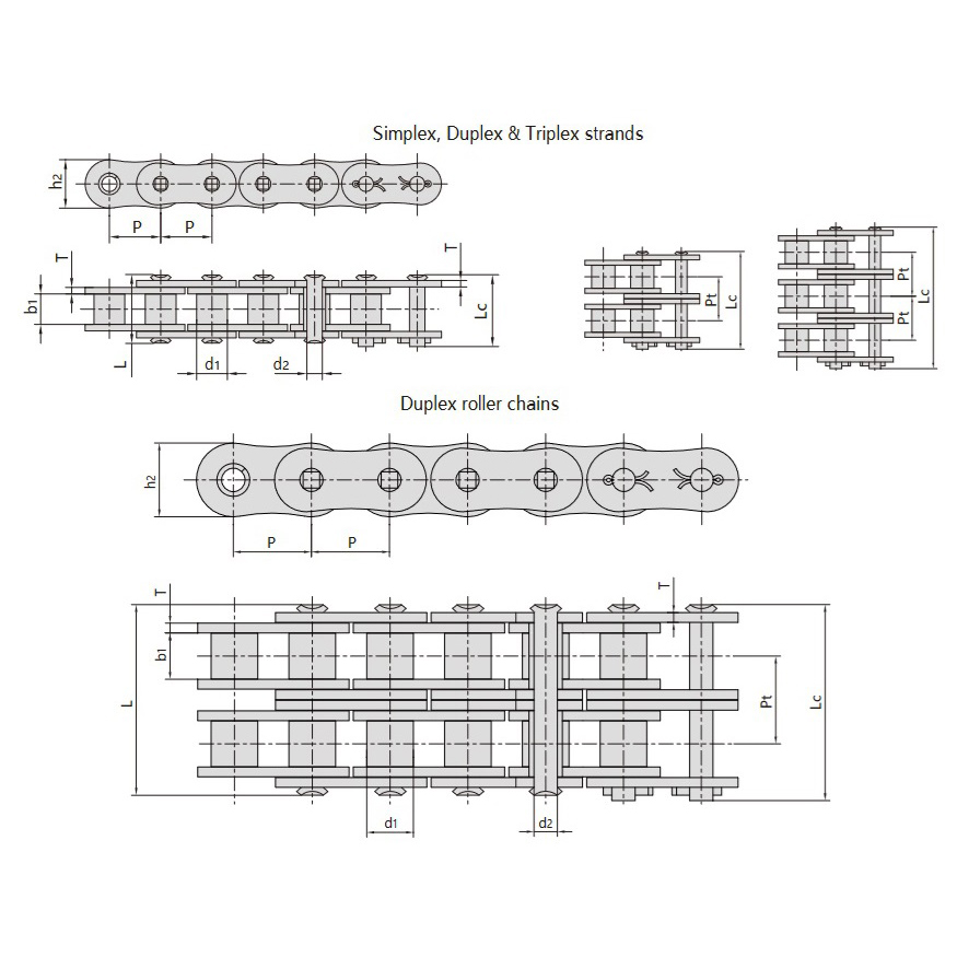 Tabela techniczna łańcuchów rolkowych o wysokiej wytrzymałości i krótkim skoku
