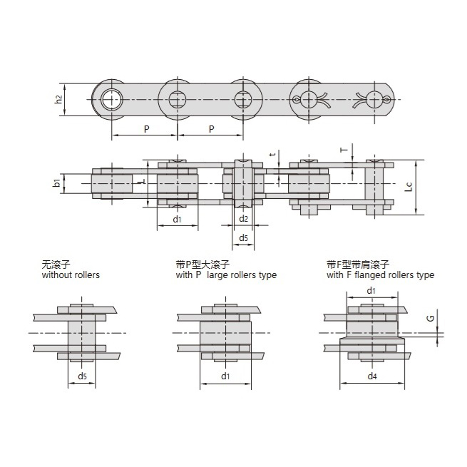 - Typ Z:Łańcuch przenośnika z pełnym sworzniem